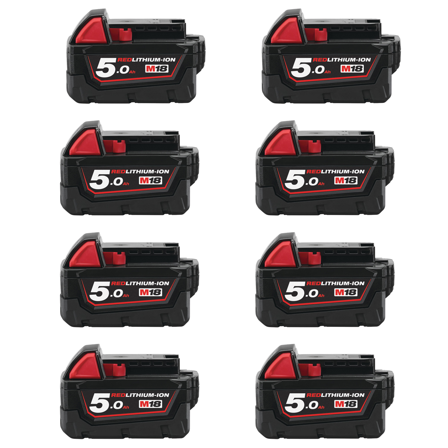 Milwaukee M18B5 18V 5.0Ah Redlithium-ion Battery – Pack of 8