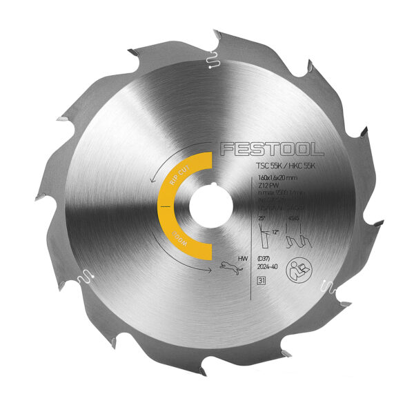 Festool 578580 160 x 1.6 x 20 x 12T Rip Cut Wood Saw Blade