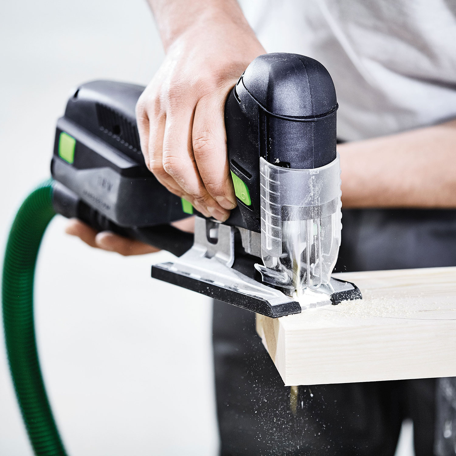 Included as Standard: 2 Saw Blades, Splinter guard, TCL 6 Charger, Battery Pack Lithium-Ion Bluetooth AIRSTREAM 4.0 Ah & T-Loc Systainer Case.