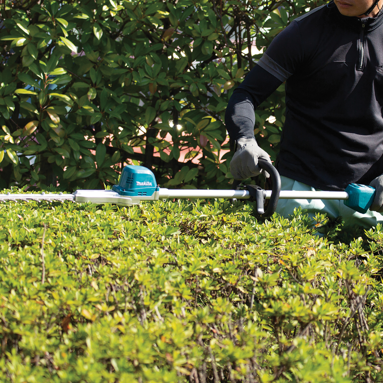 The Makita DUN600L is a compact cordless pole hedge trimmer with a 600 mm blade and brushless motor. It’s designed for precise trimming at height, offering smooth cuts, low vibration, and easy jam clearing.